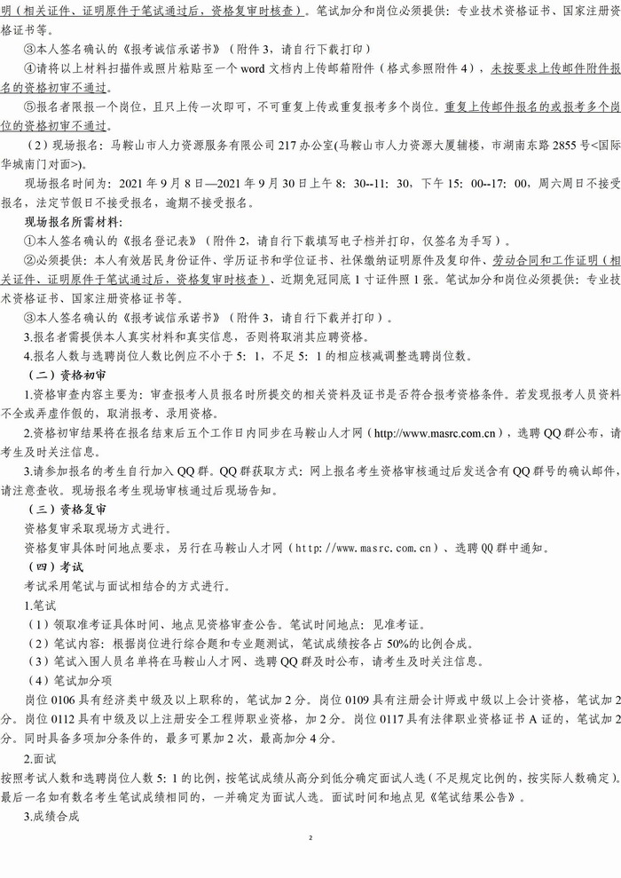 附件1:2021年馬鞍山鄭蒲港新區(qū)(法定機(jī)構(gòu))專業(yè)人才公開選聘職位表
